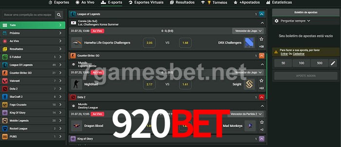 O 920bet oferece uma grande seleção de opções de apostas em e-sports com probabilidades competitivas